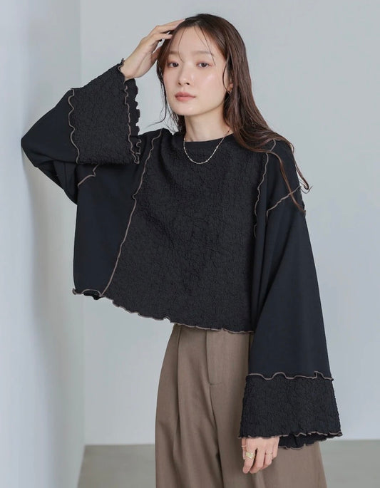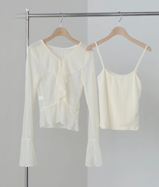 [JP] Shirring Ribbon Cropped Length Tops x Cami Set