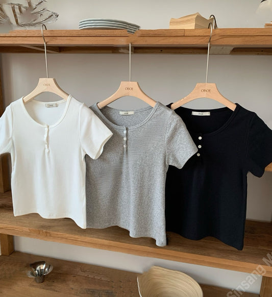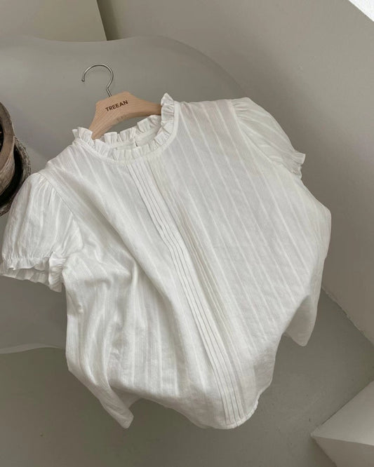 Ruffle邊間條彈性tee
