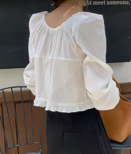Sheer ruffle hem shirt