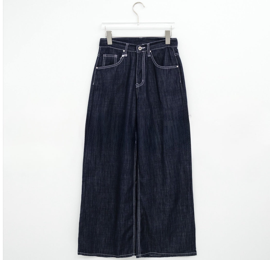 不褪色!明線薄款牛仔褲